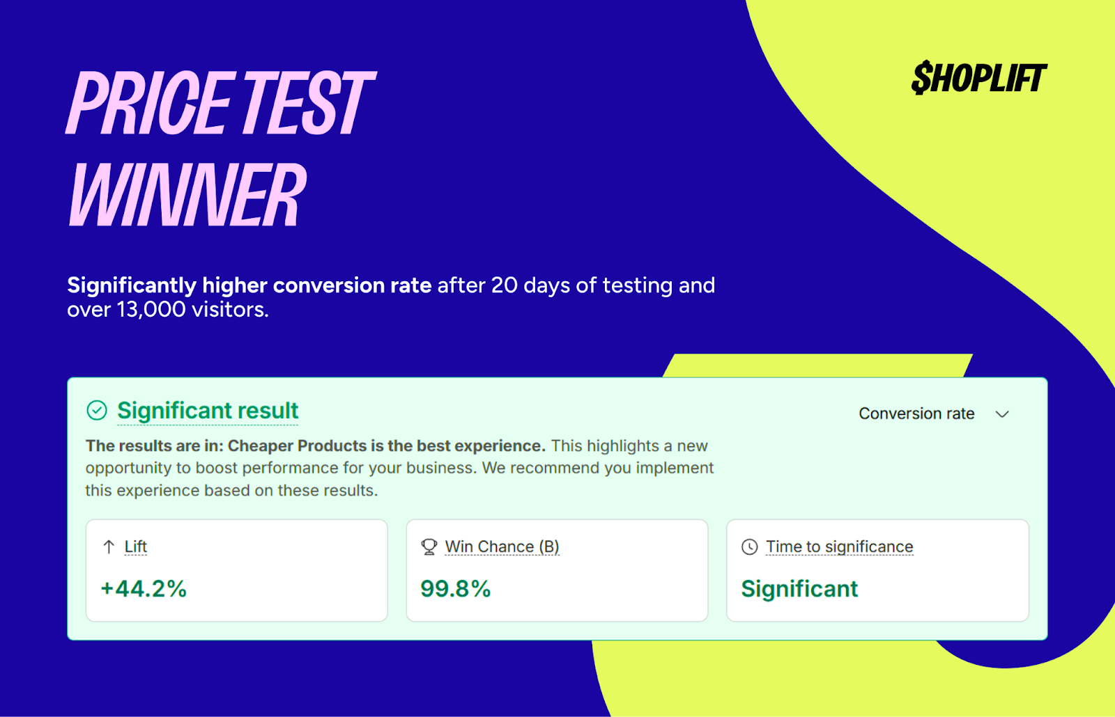 The test ran for 20 days with 13,843 visitors. The results revealed exactly the kind of hidden revenue opportunity that had been impossible to quantify before: