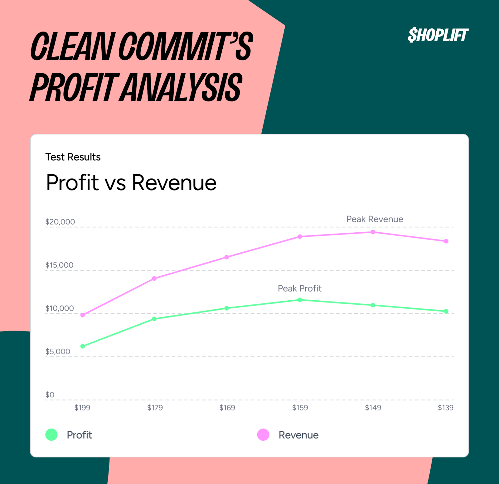 Working with Mikey, the Clean Commit team applied a profit optimization framework to the test results. The principle: as price decreases, conversion rate increases, but profit follows a curve. It rises as volume compensates for lower margins, peaks at the optimal crossover point, then declines as margins get too thin.